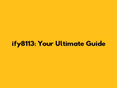 Ify8113: A Comprehensive Guide