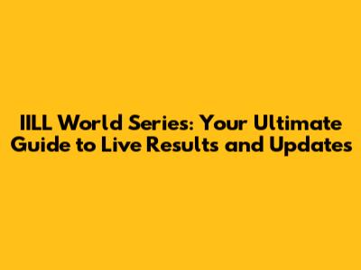 IILL World Series: Live Results & Updates!