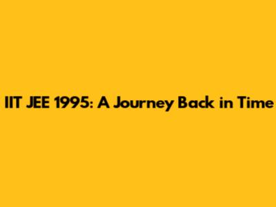 IIT JEE 1995: A Journey Back In Time