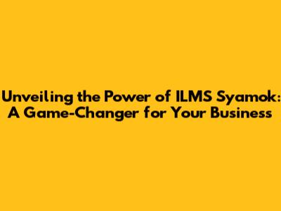 Unveiling the Power of ILMS Syamok: A Game-Changer for Your Business