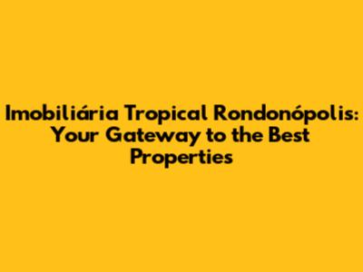 Imobiliária Tropical: Your Rondonópolis Real Estate Experts