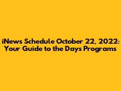 INews Schedule October 22, 2022: What's On?
