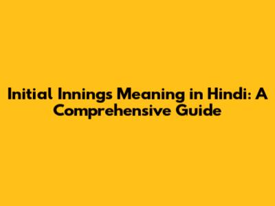 Initial Innings Meaning In Hindi: A Comprehensive Guide