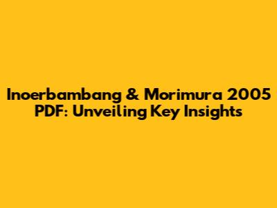 Deep Dive into the Inoerbambang & Morimura 2005 PDF: Exploring its Core Concepts