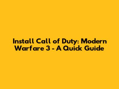 Install Call Of Duty: Modern Warfare 3 - A Quick Guide