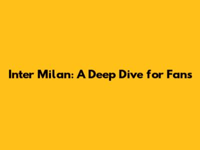 Inter Milan: A Deep Dive For Fans
