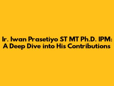 Ir. Iwan Prasetiyo: His Impact On Engineering And IPM