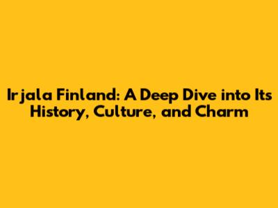 Irjala Finland: Unveiling History, Culture, And Charm