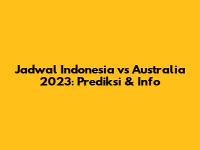 Jadwal Indonesia Vs Australia 2023: Prediksi & Info