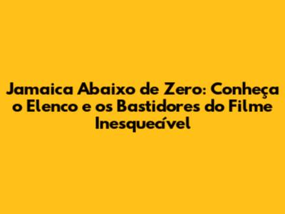 Jamaica Abaixo De Zero: Elenco E Curiosidades Do Filme