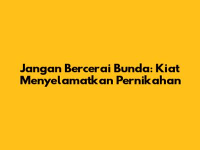 Jangan Bercerai Bunda: Kiat Menyelamatkan Pernikahan