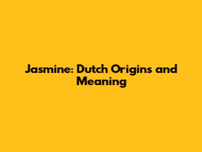 Jasmine: Dutch Origins And Meaning