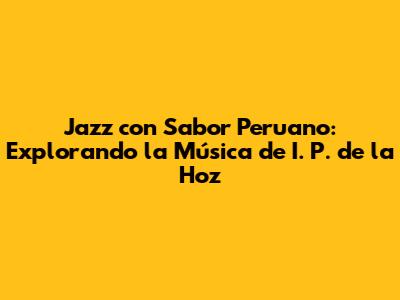 Jazz Con Sabor Peruano: Explorando La Música De I. P. De La Hoz