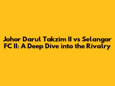 Hey guys! Let's dive deep into a fascinating match-up in Malaysian football: the clash between Johor Darul Takzim II (JDT II) and Selangor FC II. This isn't just any game; it's a battleground where future stars are forged, rivalries are ignited, and the passion for the beautiful game burns brightly. We'll explore everything from their recent performances to the key players to watch out for, giving you a comprehensive look at what makes this encounter so captivating.
