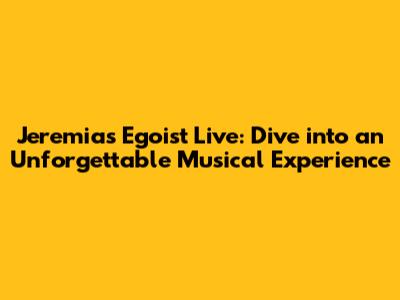 Jeremias Live: Experience Egoist - Don't Miss Out!