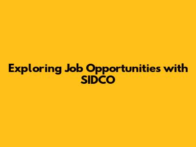 Job Opportunities With SIDCO