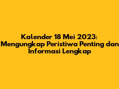 Kalender 18 Mei 2023: Apa Yang Perlu Anda Ketahui