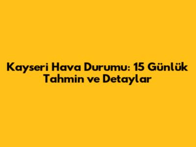 Kayseri'de Hava Durumu: 15 Günlük Tahmin NTV