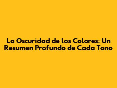 La Oscuridad De Los Colores: Un Resumen