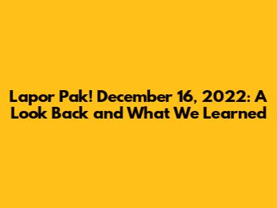 Lapor Pak! December 16, 2022: Recap & Insights