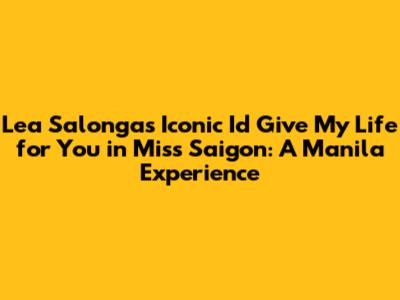 Hey guys! Ever been completely blown away by a performance? Like, the kind that gives you chills and stays with you long after the curtain falls? Well, I recently delved back into the magic of Lea Salonga's rendition of "I'd Give My Life for You" from Miss Saigon in Manila, and I'm still buzzing. This isn't just a song; it's an experience. It's a powerhouse performance that encapsulates the raw emotion, sacrifice, and enduring love at the heart of the musical. In this article, we will talk about the magic of Lea Salonga, the importance of Miss Saigon, and her outstanding performance of "I'd Give My Life for You" in Manila.