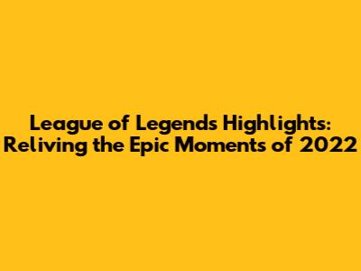 League Of Legends Highlights: Best Moments Of 2022