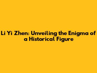 Li Yi Zhen: Unveiling The Enigma Of A Historical Figure