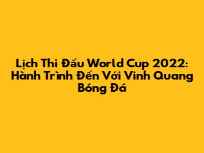 Lịch thi đấu World Cup 2022 đã được FIFA công bố và được người hâm mộ trên toàn thế giới mong chờ. Giải đấu diễn ra từ ngày 20 tháng 11 đến ngày 18 tháng 12 năm 2022 tại Qatar. Các trận đấu sẽ diễn ra tại 8 sân vận động khác nhau, bao gồm: Sân vận động Lusail, Sân vận động Al Bayt, Sân vận động Ahmad bin Ali, Sân vận động Al Thumama, Sân vận động Education City, Sân vận động Khalifa International, Sân vận động 974 và Sân vận động Al Janoub. Dưới đây là lịch thi đấu World Cup 2022 chi tiết theo từng vòng đấu:
