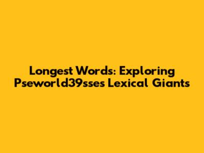 Longest Words: Exploring Pseworld39sse's Lexical Giants