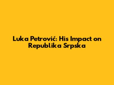 Luka Petrović: His Impact On Republika Srpska