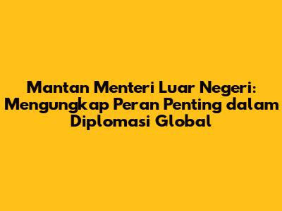Mantan Menteri Luar Negeri: Jejak Langkah Dan Pengaruhnya