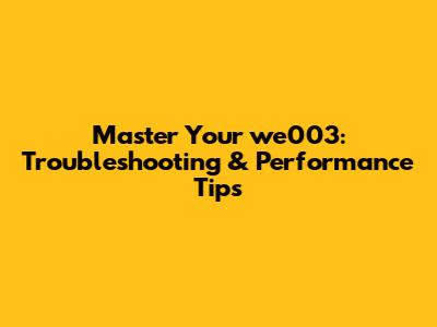 Master Your We003: Troubleshooting & Performance Tips