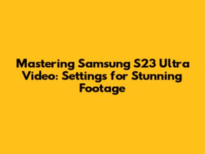 Mastering Samsung S23 Ultra Video: Settings For Stunning Footage
