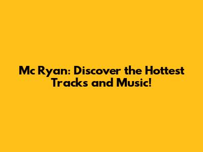 Mc Ryan: Discover The Hottest Tracks And Music!
