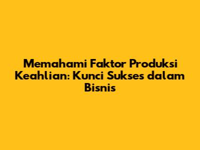 Memahami Faktor Produksi Keahlian: Kunci Sukses Dalam Bisnis
