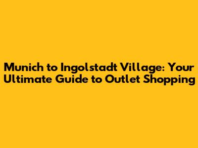 Munich To Ingolstadt Village: Your Ultimate Guide