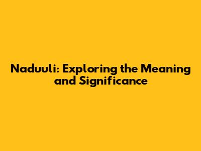 Naduuli: Exploring The Meaning And Significance