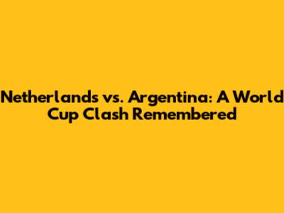 Netherlands Vs. Argentina: A World Cup Clash Remembered