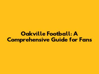 Oakville Football: A Comprehensive Guide For Fans