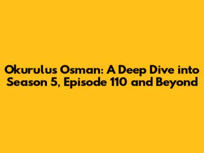 Okurulus Osman: Season 5, Episode 110 & Beyond!