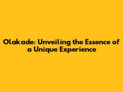 Olakade: Unveiling The Essence Of A Unique Experience