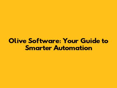 Olive Software: Your Guide To Smarter Automation