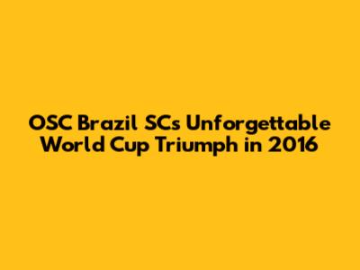 OSC Brazil SC's Epic World Cup Victory In 2016