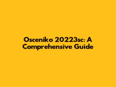 Osceniko 20223sc: A Comprehensive Guide