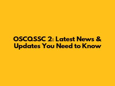 OSCQSSC 2: Latest News & Updates You Need To Know