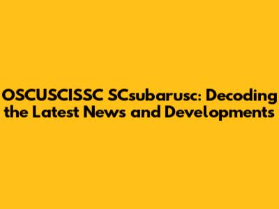 OSCUSCISSC SCsubarusc: Breaking News & Updates