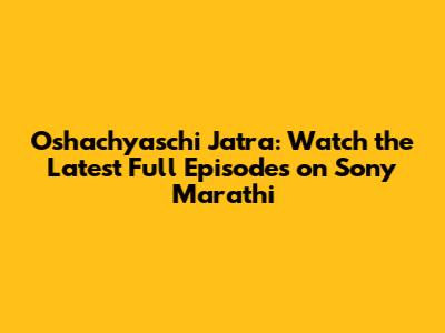 Hey guys! Are you looking for the latest full episodes of Oshachyaschi Jatra on Sony Marathi? Well, you've come to the right place! This article will guide you on where to watch and what makes this show so captivating. So, grab your favorite snack, get comfy, and let’s dive into the vibrant world of Oshachyaschi Jatra!