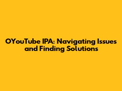 OYouTube IPA: Troubles, Solutions, And Alternatives