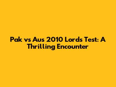 Pak Vs Aus 2010 Lord's Test: A Thrilling Encounter