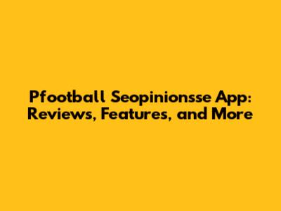 Pfootball Seopinionsse App: Reviews, Features, And More
